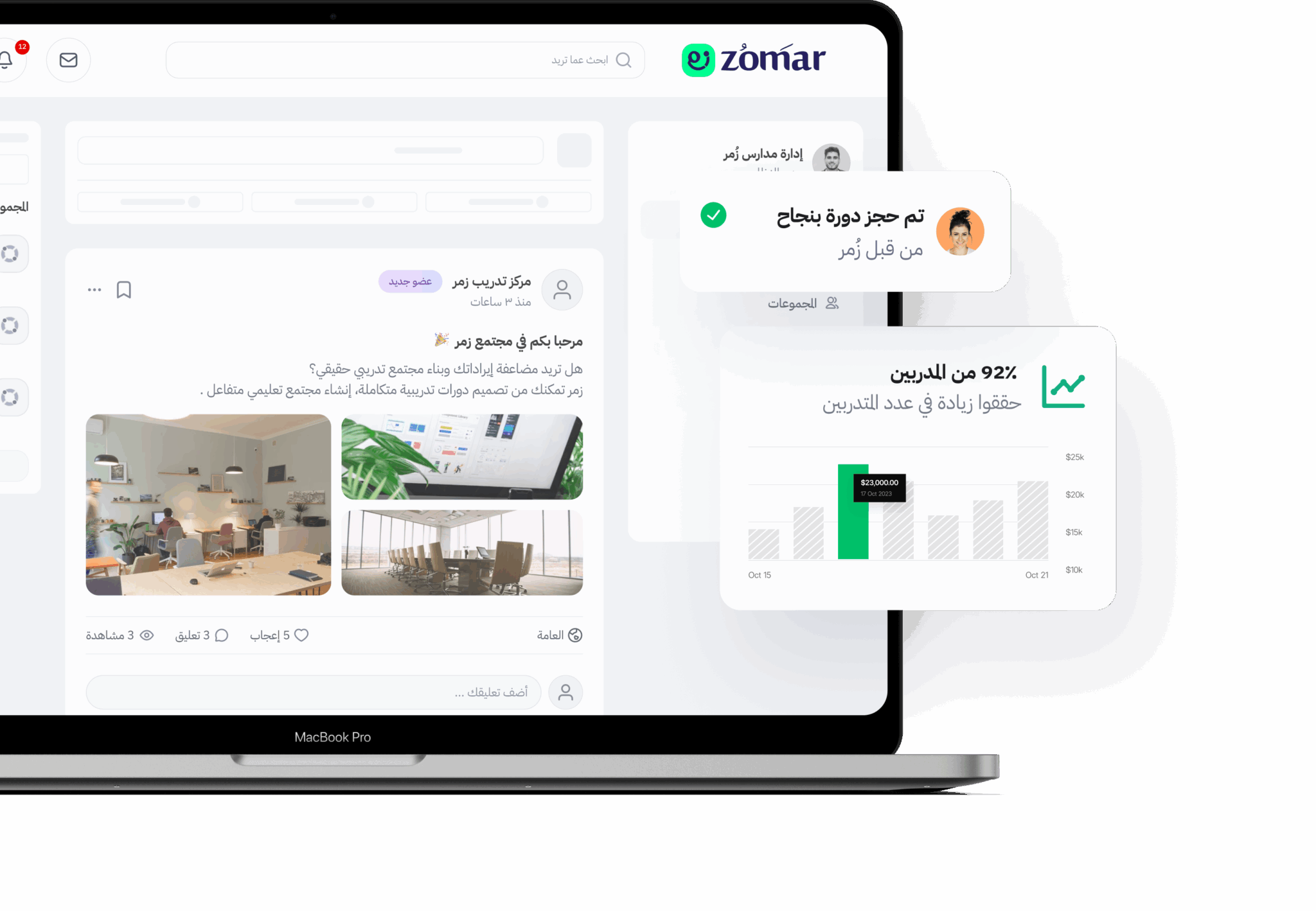 زُمر توفر لك أدوات لإدارة دورات متعددة وتنظيم المتدربين عبر مجموعات مخصصة. يمكنك تخصيص الدورات والتقييمات حسب احتياجات كل مجموعة وتصنيف المتدربين حسب المستوى الأكاديمي أو المهني، مما يضمن تفاعلًا فعالًا وتحقيق أهداف مؤسستك التدريبية والمهنية.