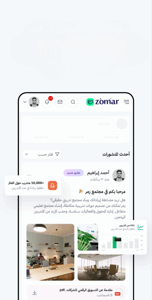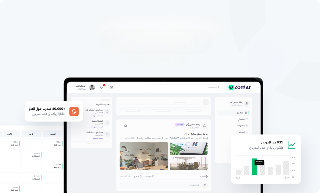 زُمر توفر لك أدوات لإدارة دورات متعددة وتنظيم المتدربين عبر مجموعات مخصصة. يمكنك تخصيص الدورات والتقييمات حسب احتياجات كل مجموعة وتصنيف المتدربين حسب المستوى الأكاديمي أو المهني، مما يضمن تفاعلًا فعالًا وتحقيق أهداف مؤسستك التدريبية والمهنية.