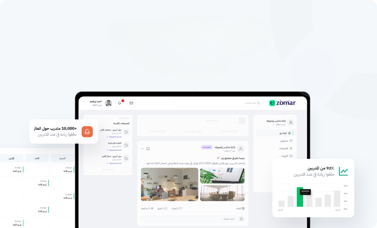 أدوات التقييم والاختبارات المتكاملة في زُمر تضمن تعليمًا فعالًا، مع شهادات وتقارير دقيقة تتيح لك متابعة تقدم المتدربين وتحقيق استدامة في التعلم.